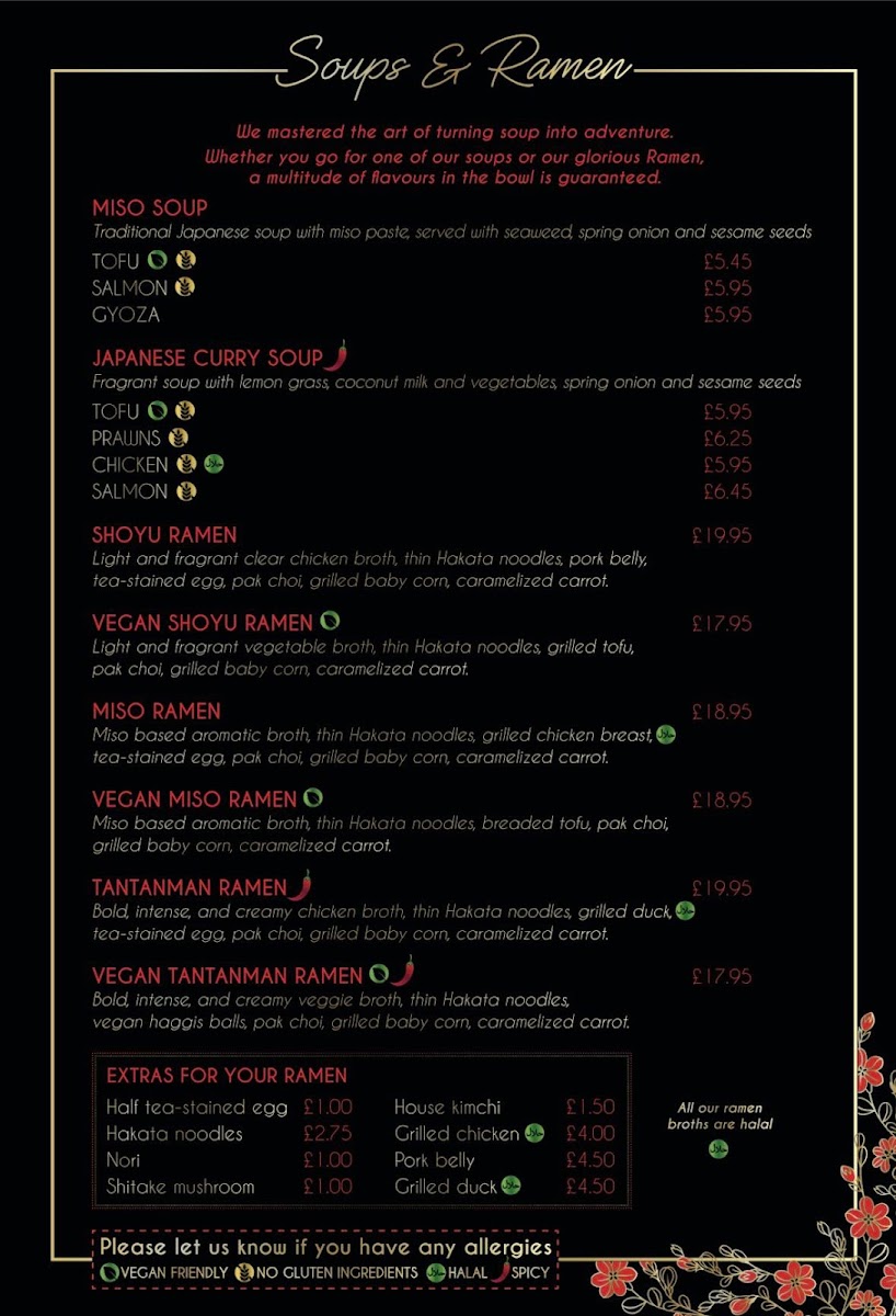 Miso based aromatic chicken broth, thin Hakata noodles, grilled chicken breast, tea-stained egg, pak choi, grilled baby corn, caramelized carrot.