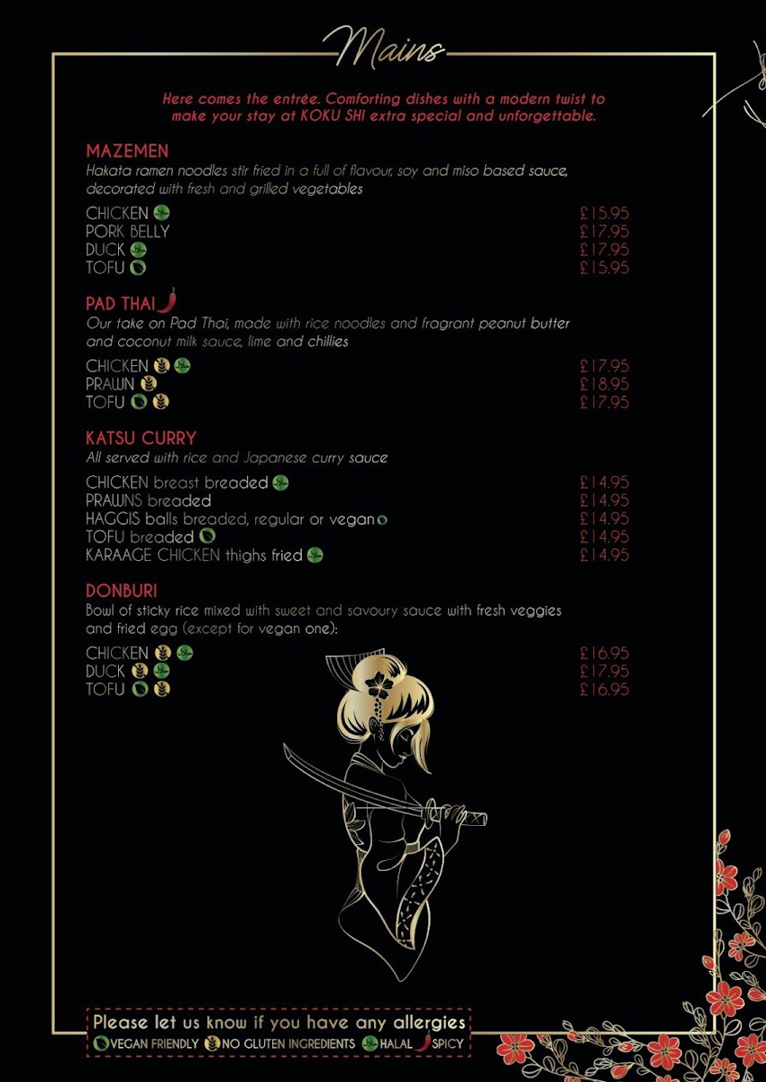 Thick udon noodles stir fried with crunchy vegetables and our house famous KokU-mami sauce which represents a unique blend of a savoury depth and a touch of sweetness.